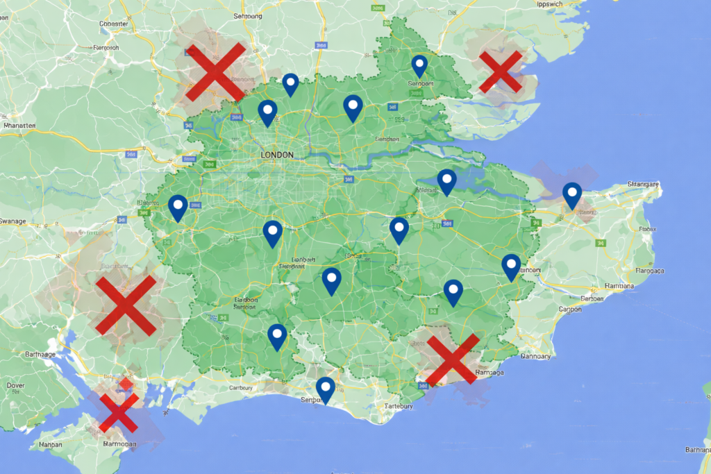 We are always expanding our coverage. If your area is not listed above, please get in touch and we will let you know if we can help.